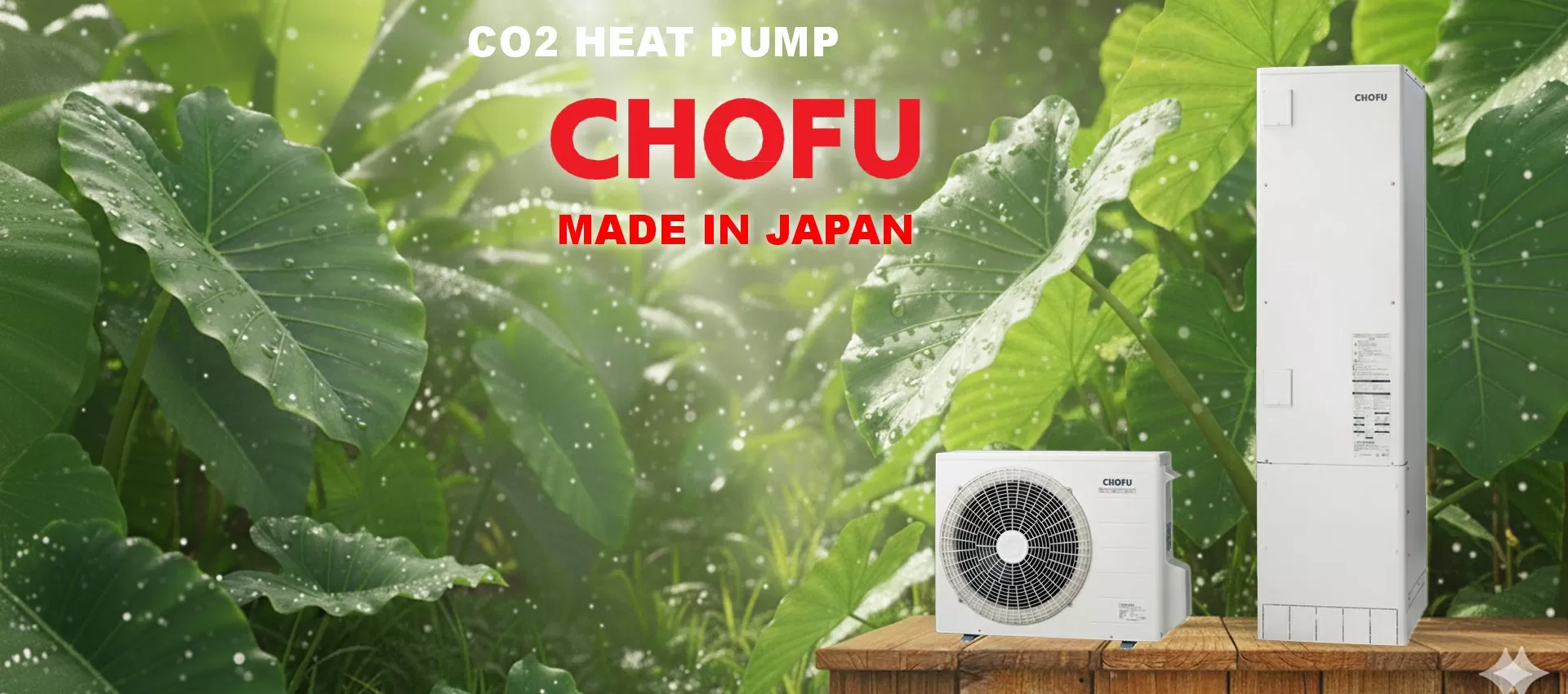 Công nghệ hệ thống bơm nhiệt CO2 có nguồn gốc từ Nhật Bản và CHOFU đã sản xuất sản phẩm này trong hơn 20 năm. Chất làm lạnh tự nhiên hấp thụ năng lượng nhiệt từ không khí, trao đổi và sử dụng năng lượng này để cung cấp nước nóng hiệu quả. Nó không thải ra khí nhà kính khi cung cấp nước nóng, khiến nó trở thành sản phẩm không thể thiếu trong việc tạo ra một xã hội không có carbon.