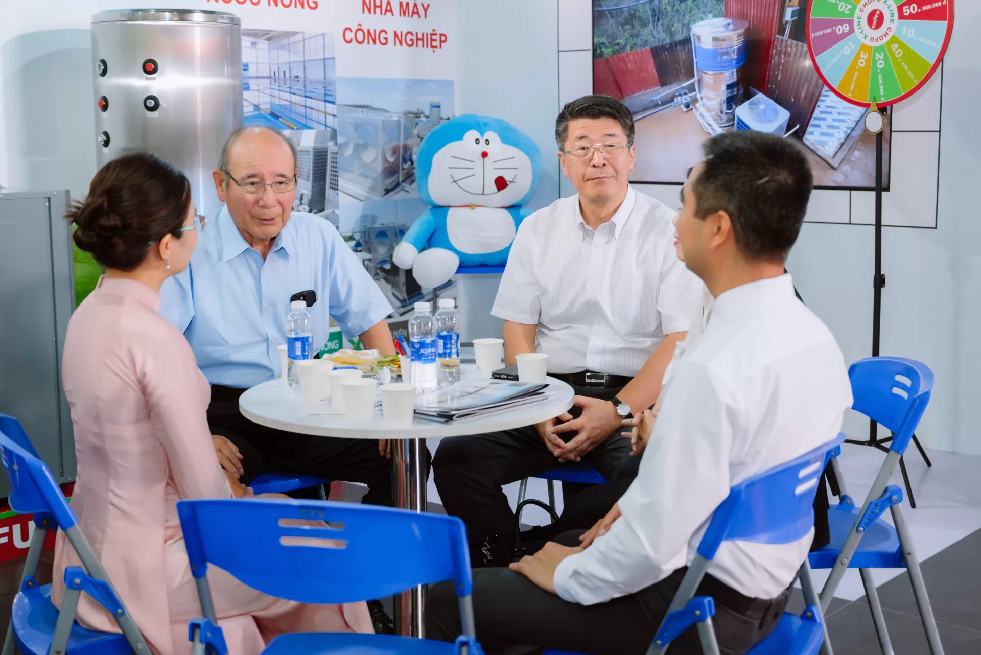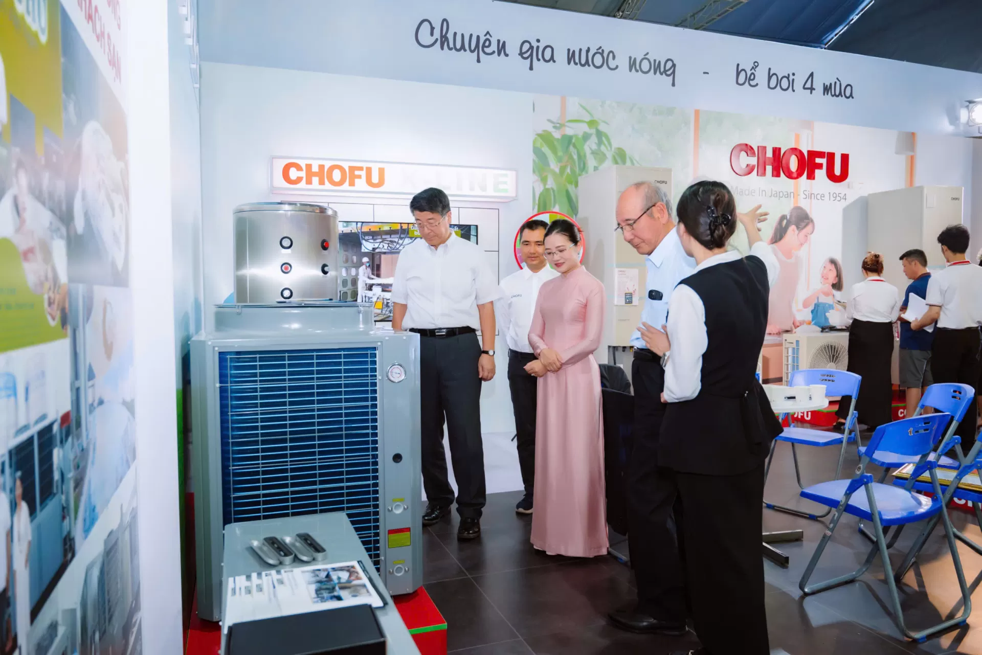 Tại triển lãm, Chủ tịch Kawakami đã trực tiếp đón tiếp, trao đổi với khách hàng, các nhà thầu và kiến trúc sư, lắng nghe những phản hồi quý báu về thị trường và giới thiệu chi tiết về công nghệ cốt lõi của Máy nước nóng Bơm nhiệt CO2 CHOFU.